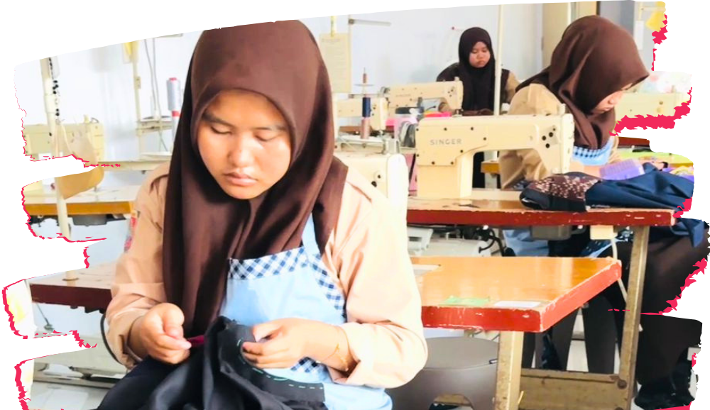 Disini kamu akan belajar bagaimana cara mendesain busana, membuat hiasan busana, membuat busana custom mode, busana industri, dan belajar membuat produk kreatif dan kewirausahaan